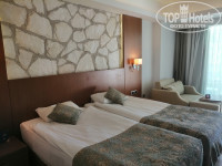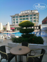 Отдых начался с удачного обстоятельства: вылет перенесли с 12:25 на 6:25 и мы прибыли в Анталию не в 19:10, а в 11:10, то есть, у нас за те же деньги получилось в отеле не 12 ночей и 11 дней, а 12 ночей и 12 дней, только без завтрака. Туда летели Red Wings c аэродрома Жуковский, без питания. По прилёту в Анталию немного растерялись: никто не встречает, куда идти не понятно. Оказывается, на самом выходе из аэропорта, находится ряд стоек, где сидят представители разных отелей. Стойка FUN&SUN оказалась дальняя влево, там были русскоговорящие девушки, которые нам сказали номер нашего автобуса. Автобус был комфортабельный, с кондиционером. Опять нам повезло - все пассажиры довольно быстро загрузились в автобус, никого не ждали. Ехали до отеля часа 1,5, заезжая в разные отели, где высаживали туристов. Всю дорогу русскоговорящий гид Кирилл увлекательно рассказывал о местных достопримечательностях, истории и легендах. В отель прибыли в 13 часов, сдали паспорта на регистрацию и отправились обедать. В 14 часов пошли заселяться в номер. Номер по ваучеру Standard Land View с балконом. Номер достался удачный - на 3 этаже по середине здания. На балконе два стула, столик с пепельницей и консольная сушилка для вещей на стене. На балконе посмотришь налево - пальмы и море до горизонта, прямо, через баскетбольную площадку - соседний отель, направо - стройка на фоне гор и мечеть вдалеке. В номере есть электрический чайник, фен, бесплатные мини бар-холодильник, сейф и телевизор. Телевизор показывает все мировые информационные каналы: CNN, BBC, Аль Джазира, украинские информационные каналы, а русских центральных каналов нет, только религиозный Союз и какие-то сериалы. Мебель в номере уже требует небольшого ремонта, дверца мини бара покосилась - надо бы петли подкрутить, но отвёртки не было. Особенность всех номеров - перегородки, отделяющие туалет и душ от общего пространства, из матового стекла, не достают до потолка. В душе дверь открывается во внутрь. Теоретически, чтобы войти в душ и закрыть за собой дверь, надо вжаться телом в угол, а практически приходится мыться с открытой дверью. С погодой повезло - 10 дней было солнечно и штиль на море, последние 2 дня - легкие волны. На пляже лежаков всегда хватает. Заход в море представляет собой чередующиеся полосы песка и мелкой гальки, которые каждый раз изменяет ночной прибой. Уборка в нашем номере проводилась регулярно, где то перед обедом. Несколько раз меняли полотенца и постельное бельё (может к этому располагал оставленный доллар или евро). Спали на двух сдвинутых кроватях. Кондиционер мы отключали, так как было комфортно с открытым балконом круглые сутки. Правда, на пятый день о нашем приезде узнали местные комары. В отеле предлагались, но не навязывались, разные тематические экскурсии, отельный гид на хорошем русском языке рассказал о них и о инфраструктуре населенного пункта Богазкент. На минус первом этаже есть бесплатный спортзал и банный комплекс. Мы встречали туристов с детьми, которые уже не в первый раз едут именно в этот отель, так как там есть детский клуб Тукан, где аниматоры будут заниматься с детьми целый день. Питание в отеле разнообразное: есть блюда приготовленные и на пару, и на гриле, острые и диетические, много разной зелени и фруктов. Алкоголь весь качественный. Очень даже приятная местная анисовая водка - раки ( как узо в греции). Выезж