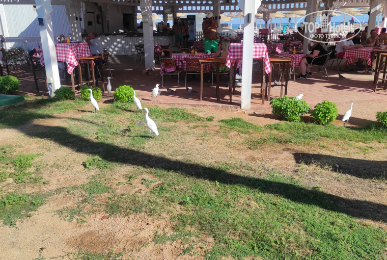 Перелет Air Cairo (почти на 2 часа быстрее чем российскими авиакомпаниями), в перелете не кормят, дают только негазированную воду, можно взять с собой термокружку/термос, чай и попросить кипятку. Отдыхал в отеле с 17 по 24 ноября 2023г. Заселили быстро, номер 7110 на первом этаже в Aqua Parke, в общем неплохой, все работает, ТВ 3 российских программы, чайник, горячую воду надо немного подождать (огромный минус - ночью кусали какие то насекомые, сначала думал на экскурсиях/пляже покусали, но почти перед уездом ночью нашел много коричных каких то насекомых на постели - на фото), но не очень удачно расположен, надо идти и в ресторан и на пляж практический через весь отель. Отель большой, много бассейнов, много зелени, только видно подуставший. Убираются каждый день, 1,5 литра воды, кофе, чай, сахар шампуни - всегда пожалуйста. Питание нормальное, всегда можно найти что поесть, на завтрак на улице жарят яичницу, пюре, овощи тушеные, вареные яйца, сосиски соевые, сыр, колбаса тоже соевая, йогурт, каши, мюсли, блинчики жареный, овощи свежие. Обедал в кафе на пляже - гамбургер, шаверма, мясо, все с салатами и картошкой фри. На ужин 2 супа, 2 вида жаренной рыбы, курица, и говядина, и на улице всегда жарили мясо/курицу, всегда пасту делали прямо при тебе, один раз были крабы. Кофе с кофемашины только в баре у ресепшена неплохое, в остальных местах непонятно что. Пляж песчаный, у берега мелко, плавный заход, хорошо для детей и пожилых, есть понтон наверное метров 50, там даже есть немного рыб, которые наверное в лицо знают всех отдыхающих потому что приплывают одни и те же. Обслуживающий персонал доброжелательный, пляжные полотенца по карточкам, мне всегда доставалась почти новое. Напитки местные, у меня была термокружка - давал наливали без проблем, только качество напитков конечно никакие. Интернет в одном месте только, не пользовался так как купил сим карту в аэропорту за 10 долларов. Экскурсии заказывал через интернет, в несколько раз дешевле чем у гида, единственное кому может было неудобно что надо было выходить к шлагбауму на въезде в отель, а не ждать на ресепшене. В общем, если бы не насекомые в номере вполне годный отель на первой линии, особенно учитывая что он был дешевле некоторых трешек.
