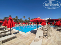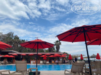 У красного бассейна очень удобные беседки, и лежаки с очень мягкими толстыми матрасами.