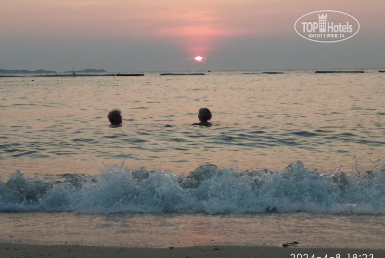 Дорога на пляж занимала 10-15 минут, сначала пробирались по каменистому берегу (на мусор старались не обращать внимания, его конечно хватает), потом доходили до пляжа, где по выходным и вечерам тайцы любят посидеть в тени деревьев и поесть свои местные продукты. В первые дни мы тоже располагались на этом пляже, потом народ стал утомлять. Про отлив нужно точно не забывать, ближе к 12:00 вода начинает уходить и дно становится какое-то илистое. В последующие дни мы проходили дальше к пляжам отеля Centara 5* и Long Beach 4*, местных там очень мало, а дно и чистота воды в разы лучше. Один раз прогулялись по побережью Сиамского залива до самого храма Истины, по дороге понаблюдали, как местные рыбаки собирают раковины и ловят крабов. Обратно возвращаться было сложнее, солнце к полудню жжет нещадно, вечером мы уже мазались гелем с алоэ и побежали покупать зонт и кепку с длинным козырьком) В последние дни нашего отдыха обнаружили какой кайф приходить на море перед закатом, из воды просто не хочется выходить, она теплее, чем воздух, а как приятно смотреть на красивейшие закаты, они всегда разные, на них не устаешь любоваться!
