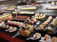 Вкусное, разнообразное питание и расторопное обслуживание в основном ресторане. Достаточное количество точек где можно выпить чай/кофе/холодные напитки в течение дня.