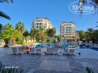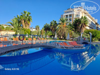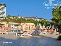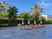 Территория самого отеля понравилась, очень зелёная, уютная, столы в тени деревьев, в тени отеля. Приём пищи проходит в очень комфортной обстановке. Столов достаточно. Небольшие очереди только за мясом на гриле. Выбор блюд большой. Если получится, загружу видео. К питанию для взрослых претензий нет. Мясных блюд достаточно. Зелени и овощей много. Из фруктов яблоки красные и зелёные, апельсины, дыни, арбузы. Ассортимент пирожных огромный. Супы порадовали. Детского питания нет.