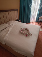 Нам сразу дали хороший номер без доплаты, на первом этаже с отдельным балконом и видом на бассейн. Мы часто проводили вечера на балконе, пили чай с десертами, принесёнными с ужина (чаще всего это была пахлава и печенье в меду). Номер в целом был чистым и уютным, хотя ванная немного разочаровала: плитка старая, и её явно не всегда удавалось хорошо отмыть. Тем не менее, это не создавало большого дискомфорта. Кровать была удобной, с хорошим жёстким матрасом. Постельное бельё за 10 дней меняли дважды, но оно всегда немного пахло затхлостью, как будто его плохо просушили. Однако уборка в целом была отличной — каждый день, всё ставили на свои места, делали красивые фигурки из полотенец, такие как лебеди и слоники. Это очень радовало.