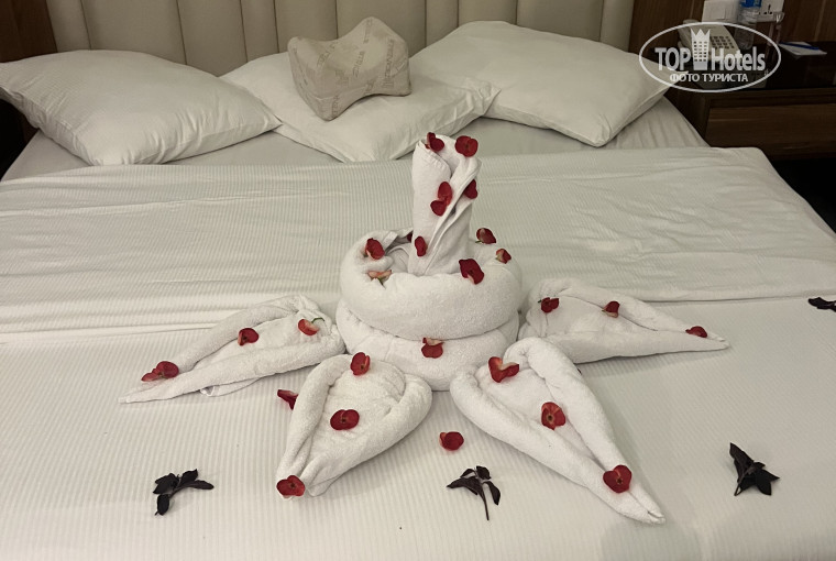Сегодня наш волшебный отдых, к сожалению, подходит к концу…Как грустно расставаться! Мы обязательно обещаем вернуться сюда снова. Летели из Кишенева, полет прошел хорошо. В отеле встретили улыбками и гостеприимством. Персонал здесь выше всяких похвал, все интеллигентные и вежливые. Номер нам достался с видом на бассейн, в спокойной зоне отеля, на втором этаже - 3204. Наш уборщик - золото! Каждый день радовал новыми сюрпризами из полотенец и цветов, ежедневно ждали эти невероятные произведения искусства! Спасибо большое за качественную уборку и приятные воспоминания. В номере все есть для комфортного проживания, хорошая кровать, удобная ванная комната, душ, необходимая косметика. В номере также сейф, телевизор, кондиционер (мы редко включали) и чайник с чаем и кофе, каждый день, если нужно, пополняли.