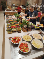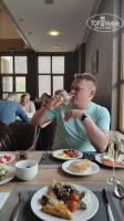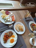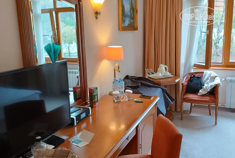 На завтраке можно наесться на весь день,холодные закуски в большом ассортименте,горячее тоже было выбрать. По мимо соков,чая и кофе на завтраке предлагают изгристое брют. Раз в день по карточке от номера можно подняться и спуститься по канатной дороге. Очень красивые виды,главное чтоб с погодой повезло. На территории большой плавательный бассейн для взрослых и есть маленький детский теплые. Спа и саунами мы не пользовались не хватило времени так как мы приезжали на сутки.