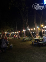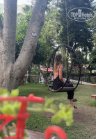 Есть отличная зеленая зона с гамаками, столиками, под огромными соснами. Там есть чайный домик и вечером все с удовольствием релаксировали там.