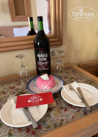 На мой день рождения в номер доставили мини тортик, бутылку вина, бокалы, тарелочки, открытку. Приятно )))