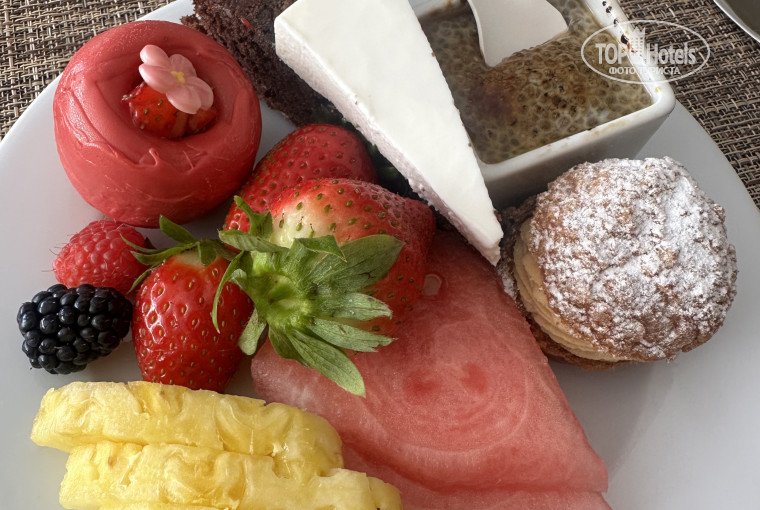 Потрясающая еда в отеле. Хотелось попробовать все, но это нереально. Разнообразные блюда, овощи, нарезки, соусы, выпечка. Перечислять можно долго. Очень вкусные фрукты, выбор напитков, шампанское для настроения)