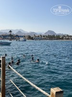 Море не глубокое, но если доплывать до буйков, то мне при росте 170 см где то по шею, в принципе хватало. Также есть пирс, где сразу глубина. Рифа как такового на этом пляже нет, но рыбки имеются: видела около 4-5 видов рыбок. От отеля ходит один раз в день трансфер на платный пляж Эль Фанар. Туда обратно 3$ с человека. Вход на пляж 4$ с человека. Вот этот пляж коралловый, там очень красивый риф, но заход сразу с понтона.