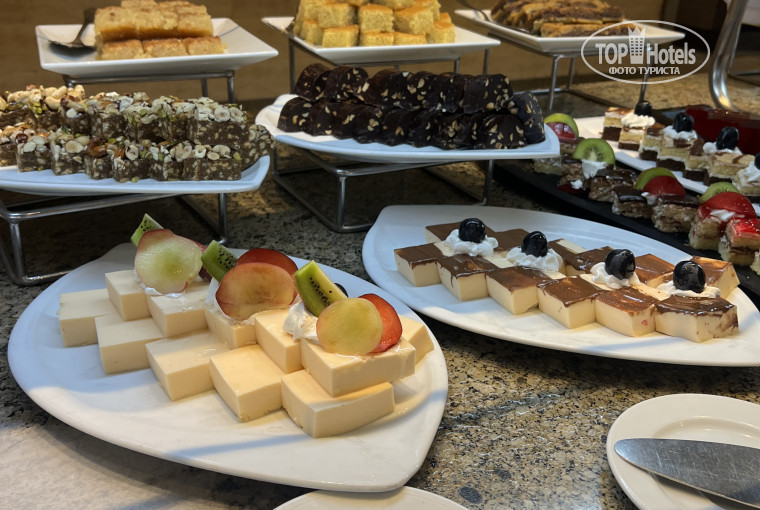 Питание в отеле оцениваю на 5 из 5! Всё что мы брали, было вкусным. Большое разнообразие еды как на обед, так и на ужин. Завтраки были одинаковые) Присутствовали тематические ужины, по типу Бургер день, день морепродуктов или день напитка julep.