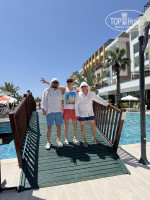 Территория отеля ухоженная, зелёная, с продуманной инфраструктурой. Несколько бассейнов — в том числе с горками, а также зоны для отдыха в тени. Пляж — песчано-галечный, до него 5 минут пешком через территорию отеля, лежаков хватает всем. Есть бар на пляже, где можно перекусить и взять напитки.