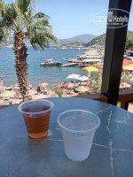 В отель приехали очень поздно, и заезд был достаточно большой — почти весь автобус. Насколько я себе представляю, ужин в первый день у нас был оплачен, но ни о каком ужине речь не шла. В фойе отеля стоял аппарат с горячей водой и пакетики с чаем, мы налили себе чай и доели всё то, что брали из дома, угощая друг друга. Кстати, это помогло нам быстро перезнакомиться. Номер мне достался самый что ни на есть отвратительный в левом крыле, плохо убранный и с убогой мебелью, но я настолько устала, что не стала спорить и легла спать. Тут во многих отзывах пишут про лысого дядю, который вымогает деньги — всё правда. На следующее утро я пошла обозревать отель. Ресторан находится на... как бы объяснить, терраса, балкон, в общем, можно занять столик ближе к краю террасы, есть и любоваться бухтой — очень приятно. Отель — реально первая линия, и это большой плюс. Пляж грязный был. Печально, что теперь и в Турции есть такие вот пляжи с грязным песком и бычками (не рыба — окурки). С лежаками было всё неоднозначно, их вроде бы много, но в определенное время начинает падать тень от ближайшей горы, и нужно искать какое-то другое место для загара. Место на пляже занимала перед завтраком, это легко сделать, так как всё рядом. Местоположение отеля — отдельная история, как по мне — отличное. Первая линия, рядом очень красивая гора, если пойти в правую сторону от отеля, с дороги открывается прекрасный вид на открытое море, яхты и катера — можно пофотографироваться. Мимо отеля проходит прекрасный променад. Можно вечером погулять и по нему выйти в Ичмилер, в самую оживленную его часть. Поднимаешься наверх — автобусная остановка. Несколько минут, и ты в Мармарисе. Можно посетить старый город. Посидеть в кафе на крыше, попить кофе и полюбоваться закатом. Но отель...