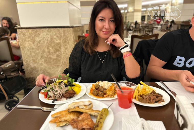 Огромнейшая красивая территория! Еда - отвал башки, и мясо , и рыба , и курица, короче было всё, наверное кроме креветок и море-продуктов. Пироженок столько всяких-разных, но я даже до них не дошла😅