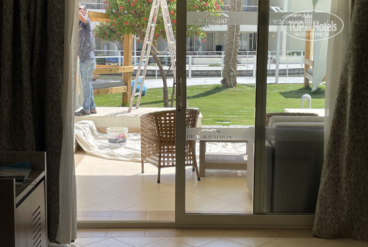 Близко к пляжу, но далеко от детских бассейнов, основных ресторанов, анимации и прочее. «Зато будет тихо» - подумали мы… Следующие два дня мы просыпались в 8 утра от звуков ремонта. Сбивали штукатурку, красили стены и крыши. С крыш краска капает вниз, ну и собственно запах стоит специфический. Вещи сохнуть на балконе уже не оставишь. Ремонт продолжается, надеюсь завтра не начнут ремонтировать внутри номера.