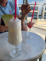 На пляже две точки питания и два бара, все они также забиты едой и напитками, мороженое. Лежаки очень удобные, их много, хватало всем! Море идеальное, чистое, теплое, ласковое. Заход в море отличный, правда есть камни, но на входе висит информация, мы изучили ее заранее.