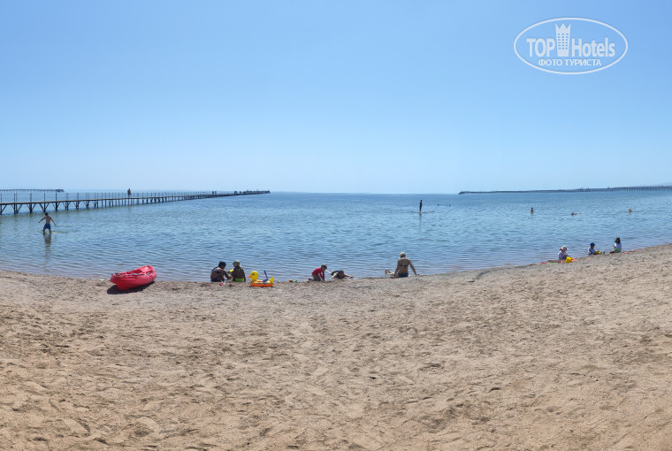 МОРЕ. Отличное, вход песок и местами коралловое дно. Нам не повезло, воды у берега почти не было максимум 20-30см и то только после обеда. С утра отливы и море мелеет на глазах. Будьте готовы каждый день ходить к нему дальше. Последние дни с берега купаться вообще не получилось. В общем, сначала по территории до пляжа, а потом от пляжа по понтону либо, условно "до середины" (примерно 370-460метров), либо до конца, примерно 600 метров в один конец (метраж от пляжа). Нам особых проблем не доставляло. Просто шли и всё, как и все остальные. В середине понтона - примерно по колено или по пояс, как повезет. Но можно плавать даже без коралок, есть где встать на песок. В самом конце глубже и огорожен пятачок для любителей поплавать с маской. Там встать нельзя, если вы конечно не 2 метра ростом и больше. Можно тоже поплавать без коралок, рыб полно и всяких разных. Но мое мнение, спец обувь все равно нужна, если поцарапаетесь будет сильно больно. В общем можно посмотреть красоту красного моря на глубине. Для любителей поострее, есть дайвинг, заплывают глубже и дальше. Несколько дней висел красный флаг, в самом конце понтона купаться нельзя, но из-за того что у нас лагуна, по средине купаться можно всегда, правда мелко. Многие искупаются и уходили в бассейны.