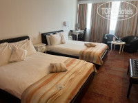 В номере чисто, две двуспальные кровати, cейф, минибар, халаты, тапки, ручка с блокнотом...Единственно что он приготовлен на двоих. Выглянул в коридор, девушка как раз взялась за уборку следующего номер, попросил донести всё для третьего человека. Извинилась, сказала что не сообщили что трое жильцов и через минуту донесла всё и даже третью бутылку воды. Это была единственная приветливая и приятная девушка в отеле))) Водичка приветственная в номере так же есть - по бутылочка на жильца.
