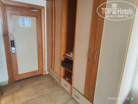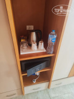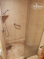 В ванной фен, гели, шампуни, кондиционеры и лосьоны - все пополнялось. Дозатора с моющим средством нет, мыло кусковое. В душе половина только отгорожено стеклом, из-за этого вода попадает на пол. Натянута веревка для сушки вещей. Сантехника старая, но все работало, ничего не сломалось. Вот в принципе и весь ДЕЛЮКС. Честно, кроме бассейна и вида на море, не понял, в чем делюксовость. Не было халатов, тапочек, швейного набора, зубной пасты и щётки, бритвы. Нет даже ложки для обуви, мне ее не хватало.