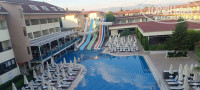 Отдыхали с мужем в этом о еле в июле 29#5 года. Отель очень понравился, всё чистое, новое, взяли номер с видом на бассейн и с балконом, даже перед поездкой несколько раз связывалась с менеджером, начитавшись отзывов, что заселяют в номера без окон) но всё прошло хорошо, просто нужно не пожалеть переплатить пару тысяч и выбрать номер с видом на бассейн и балконом и тогда всё будет хорошо) Анимация у отеля на высшем уровне, видно что аниматоры мастера своего дела, каждый вечер проходили ра знает шоу, днём развлекали водным поло и дартсом. Питание хорошее, не мишленовский ресторан конечно, но за свои деньги вполне достойное. Единственное мы видимо ездили в очень высокий сезон и людей с каждым днём всё было больше и больше, еда иногда быстро заканчивалась, но работники старались сразу пополнять блюда, ну и немного расстроились что неделю отдыхали и никак не могли попасть попробовать панкейки, но сказали своё пожелание на рецепшене и на следующий день они исправились и всем стало хватать, а вот на эклеры мы не могли попасть вообще все 6 дней из 7,тоже конечно возмутились, хотели хоть раз попробовать, ну в итоге получилось их попробовать только на ужин в последний день, ну что ж и на том спасибо)) тем более что на радостях набрали аж несколько штук за всю неделю, что нам не давали)) так бы конечно взяли поменьше, если б ни эта ситуация) Но и в принципе сотрудники конечно стараются м их там гоняют, особенно строгий дядя ы ресторане,что даже как-то было их немного жалко.Убираются чисто, в номерах все исправно, у нас даже была ванная с закрытыми дверями. Кондиционер работал исправно. Даже если просили не убирать, всё равно приносили несколько рулонов туалетной бумаги и воду. Небольшой минус конечно этого отеля, что море далеко, пешком не дойдете, но автобус ходит каждые полчаса, когда все понаехали в июле даже делал рейсов больше, каждые 15 минут иногда. Чтобы все желающие смогли добраться на пляж. На пляже только напитки, соки и вода, иногда давали арбуз. Море тёплое, песок, никаких плит и камней. Но зато отель находится рядом с центром Сиде и можно много куда доехать на маршрутке, например до водопадов Манавгат мы ездили, а пешком от отеля можно дойти до Старого города. Вообщем и целом рекомендую этот отель.