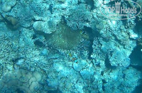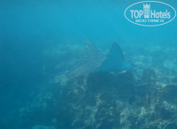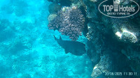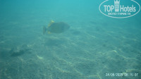 Рыба. В основном, набор стандартный: много попугаев, бабочек, хирургов, пикассо, флейты, иглы. Плавают стайки мелких барракуд, огромные балистоды (триггер), иглобрюхи и литрины. Несколько раз видели одиночных огромных барракуд. Много скатов. Довелось увидеть орляка и мурену. Мурена точно живет на рифе Фанары. Огромная змеюка вылезает вечерком. Ближе к деревянному понтону, в сторону маяка есть еще актинии с клоунами. У нашего понтона на ближайшем рифе лежит рыба крокодил. На нашем пляже, до рифа встретили камбалу.