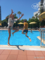 В отеле 2 бассейна, есть горки. Пляж близко. Своего пляжа нет, но за напитки можно полежать комфортно при любом баре или пойти на городской пляж бесплатно. Также есть небольшой свободный кусочек пляжа (без шезлонгов и зонтом рядом с отелем: из отеля идёте на пляж налево, рядом с Юнус отелем поворачиваете направо (в сторону Ичмелера) метров 50.