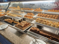 Ассортимент еды меняется. Всего достаточно. Мне пицца очень понравилась. Простенько, но прямо из печи. Очередь, обычно, 2-3 человека, которые набирают себе горячее. Сразу после открытия очередь может быть больше, но быстро рассасывается. Кофе машины в обед не работают. Может в баре наливают, где все напитки. В обед увидел, что вино в бутылки наливают из больших пакетов. Что там за вино, не понятно. Извините, понятно - вода, крашеная вином. Может не всегда так? За ужином было прилично. В общем, пейти пиво пенное, будет морда ого-го ))). Мороженое мягкое, слева, рядом со сладостями. Тоже очень сладкое. Есть 3 вида мороженого, шоколадное не всегда бывает. Со вкусом фруктов есть всегда (манговое прикольное). Порадовали крабами на гриле (три раза).