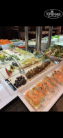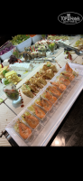 Пошли на ужин, были в восторге от разнообразия еды. Я, конечно, была наслышана, что здесь хорошо кормят, но чтоб настолько…! Одной говядины 5 видов на каждый прием пищи, чего уж говорить о другом. По еде: кальмар каждый день, красную рыбу на бутербродах давали также ежедневно, креветки за 10 дней давали 4 раза, баранина, перепелки, осьминог, лосось, рыба жареная, роллы, салатов видов 20, картофель фри, бургеры, пюре и тд и тп. А какие десерты, это что-то невероятное. И восточные сладости, и чизкейки, и тортики всякие с фруктами, и ореховые козинаки. На барах дают чипсы и орешки. Свежевыжатые соки и фреши с утра до вечера. В общем, худеть явно не сюда! Причем каждое блюдо приготовлено очень вкусно!!! После каждого приема пищи я выползала из-за стола и была готова расцеловать руки поваров. Завтраки вот кстати всегда одинаковые были, а обеды и ужины различались.