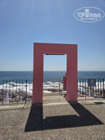 Пляж. Он находится в 10 минутах медленным шагом на право от отеля. Мы шатлом не пользовались, ходили с ребёнком пешком. На пляже конечно бы заменить зонтики, ко всему остальному ровно. Ребята там молодцы! Предлагают фруктовые тарелки, напитки разносят, видели, что можно заказать еду по меню(не пользовались), напитки, мороженое. Заход в море, как писали, мелкая галька. Мы привезли аквашузы , но ими не пользовались.
