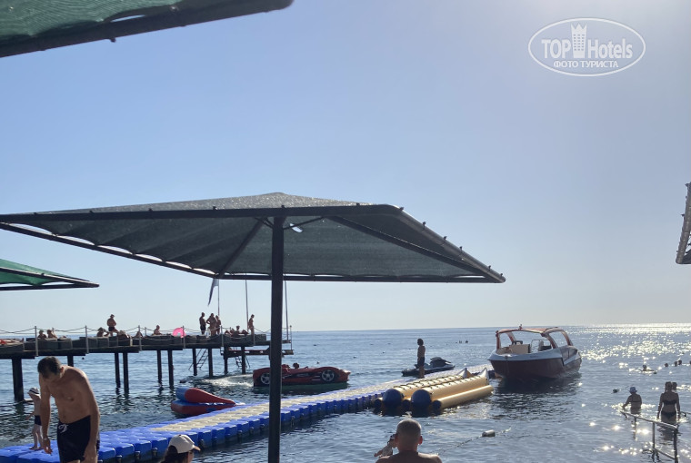 В отеле очень хорошее питание, много разнообразной рыбы, на пару, тушеная, жареная, на гриле, красная, вобщем разная и вкусная. Были и креветки. Я люблю морепродукты и рыбу, поэтому для меня супер. Мяса тоже много разного, баранина, говядина в разных вариантах. В номере стандарт все работало, очень чистенький. Кондиционер шумноват. Звукоизоляция хорошая. Соседей мы не слышали, а вот мулла в 5-30 поет слышно), а потом петухи орут). Алкоголь местный: пиво бурда, перепробовав несколько напитков, муж остановился на раки, я на мартини со спрайтом или просто мартини (вечером). Бармены разные, есть хмурые, есть улыбчивые. В хаммаме прям хам сидит. Может не в настроении был, не знаю. Неудобное время выдачи и сдачи полотенец: 8-30 и 17-00. Хотя завтрак в 7-30, и хочется быстрее на пляж, а не ждать еще полчаса. Да и вечером на пляже хочется быть до 18, а не бежать полотенце сдавать. Поэтому мы их не сдавали (были 5 ночей, они не стали колом). Территория скучновата, хотелось бы локации для фото, можно бы фигурок каких-то поставить, качели там, еще фишечек. Бассейн один. Отдыхают в основном русские, белорусы, украинцы. Все дружно. В море с пирса или есть мостик, но он так неудачно расположен- между пирсом и стоянкой катеров, если волны, тебя понесет или к катерам или к столбам пирса. Если бы его перенесли вправо от пирса, было бы удобнее. Буйки очень далеко, любителям на них покачаться проблематично, а те что по бокам, грязнущие, брр). Анимация ненавязчивая, на пляже зарядка. Дискотека в 23, ооочень громкая, поговорить между собой не получится, и барменам заказ приходилось кричать, и то не всегда услышат. На ресепшн мужчина строгий), в баре на пляже очень приятная улыбчивая девушка, иногда носит по пляжу лимонад. Уборка по запросу. В номере есть кнопочка: уберите номер, тогда уберутся, но без лебедей). Вобщем 4 хорошая.