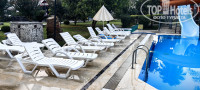 Территория. Заявлены три зоны бассейнов. На деле — три лужицы, вокруг которых вплотную друг к другу, как селёдки в бочке, лежат гости на шезлонгах. Шезлонги — те ещё ветераны курортного фронта, белые, потрёпанные и начисто лишённые намёка на комфорт. Все, разумеется, заняты с 5 утра. Полотенца не выдают — это, видимо, чтобы отсеять слабаков. Советуем сразу закупаться ими впрок, как перед блокадой.