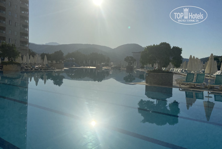 Замечательные виды и закаты, отель находится на горе . Корпус В новый, 207 второй этаж, номер эконом. мы жили в 15 минутах неспешного шага от основного здания. Рядом остановка автобуса на пляж. Есть и короткий путь в осн. здание по крутой лестнице-5 минут. Ремонт номера свежий, 22 метра, стена одна темная сужает комнату. Зеркало до Пола от потолка с освещением по периметру закрывает макияжный стол, им зеркало надо в другом месте повесить. Соседний номер другой формы, возможно там зеркало удобнее расположено. Подушки, постельное новое, чистое. Вид не на море, на зады с прекрасными цветами и горами. Бассейн с баром этажом выше. Номер в тени после обеда, а с видом на море жара всегда /// интернет на отлично. На пляж каждый час отправление, ровно. Путь на автобусе занимает 10 до моря, 12 минут до пляжа. Стены вдоль дороги обвиты и увешаны растительностью и цветами. От дороги, вернее от видов получала наслаждение, кроме двух поездок с моря стоя , к тому же оба раза полный автобус ехал 15 минут. Пляж обычный, в баре на пляже вода, пиво, вино, кола . Айран брали из отеля с собой в холодильнике . На пляже заказать одно из восьми блюд на выбор. Лежаков много, всегда есть свободные места. Бич бой и остальные работают тихо, незаметно. приходим- матрасы лежат, зонты открыты. Так же и официанты, без шума. ///. Заход море Галька с песком, меня устроили. Волны были, надо проявлять осторожность и внимание при заходе. Есть пирс. /// питание на отлично. Завтрак стандартный, яйца жареные в доступе, не стоять, сыров много, фруктов. На обед Фрукты (персики, нектарины, виноград, сливы, бананы, дыня, арбуз) Рыба всегда в меню. 2 вида в основном.Часто на гриле. На обед заезжали прям с пляжа на автобусе. Заселили в 10 часов . Есть чайник, чай, кофе, сахар, вода. В ванной комнате есть фен, мыло, гель для душа, шампунь, кондиционер, ватные палочки и диски, тапочки. Понедельник рыбный день, давали очень вкусную рыбу на гриле. Иностранцы часто едят макароны или картошку фри. И счастливы…. Питание на отлично. //// анимация Шеф аниматоров девушка, на нескольких языках объявляет вечернее шоу. По энергетике и артистичности никакая, первый отель, где такой примитивный отельный танец!!!! Под такую зажигательную песню, отстой…И народ расходится, не танцует с ними…. Анимация вечерняя перв день шоу танцевальное, но танцы однообразные, и больше акробатически этюдные. Общая идея сказки, где влюбленные проходят через препятствия и периодически встречаются… принц ее то подкинет, то нагнет, то перевернет. С Костюмами ребята заморочились, надо сказать. Вторник, турецкое шоу. Про Адама и Еву - великолепно! шоу с разными национальными турецкими танцами. Настоящий танцевальный Коллектив. 9 сентября был день рождения у руководителя( исполнителя главной роли) я так поняла, основной язык его русский… Среда, монгольское шоу. Профессиональное исполнение трюков, легко и с улыбкой, отличная хореография, слаженность и синхронность рук, ног. Музыка то воинственная, то волшебная и завораживающая, переплетается с номерами, прекрасно их дополняя. Номера перетекают один из другого, дорогие продуманные костюмы. Великолепно, Местами мило. Среда живая музыка. Началось с неполадок со звуком, первые три песни незнакомые, возможно турецкие, надрывно тянучие, народ порасходился. Пятая была на английском, дальше не усидели, не зашло. ////. …. 11 лет