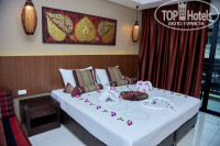 Всех приветствую! Отдыхали на Пхукете в этом отеле в конце августа - начале сентября. Прилетели с задержкой к 15 часам. Номер получили сразу на первом этаже в корпусе где ресепшн. Корпусов у отеля три. Номер большой, чистый. Маленький холодильник, кондиционер, довольно большой балкон. На балконе мягкий диванчик и столик. Вечерами было комфортно посидеть. Телевизор с несколькими российскими каналами. А самое главное вай-фай прямо в номере. В каждом номере свой. Также на ресепшене, у бассейна, в ресторане. В общем, на территории отеля ты всё время на связи. Уборщица приходила каждый день, просто мы не всегда просили убраться, не было необходимости. Каждый раз ставили две бутылки воды. По поводу завтрака. Лично нас он вполне устраивал. Белый рис, рядом курица немного острая, дальше неострая курица, сосиски, глазунья, суп. Всегда горячий чай и кофе. Из фруктов были только арбузы. Также фруктовый сок, вода. По времени завтрак с 7 до 10 часов, более чем достаточно. Очень порадовал бассейн. Оптимальная глубина, чтобы поплавать взрослому и понырять детям. По длине тоже довольно хорош, я каждое утро довольно много плавал. На 8 дней брали в аренду машину, для её стоянки нам было предоставлено отдельное место, несмотря на довольно тесное пространство вокруг. В общем, придираться ни к чему не хочется, нас всё устроило. В Тайланде как правило, в отеле всё равно проводишь не так много времени, в основном где-то гуляешь. Так что отель рекомендую!