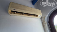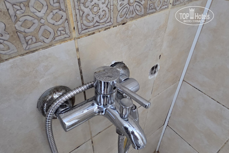 Заселились ночью, три человека - я, жена и теща. Вначале дали номер с видом на бассейн на двух человек. После вопроса, кто должен спать на полу, регистратор сумел досчитать до трех и принёс ключ от номера с видом на море с доп.кроватью. Но проблемы с математикой, видимо, тут не только у регистратора. Количество полотенец менялось каждый раз и не в нашу пользу. Приходилось в душе пользоваться своими пляжными полотенцами. Лифт тоже не внушал доверия, очень тесный, скрипучий, но хоть никто в нём не застревал. Вид номера поначалу вогнал в ужас. Телевизор висит на 2/3 вылезших дибелях, кроме зерна поймать на нём ничего не удалось. Кондиционер страшноватый, но работает хорошо. Дверь балкона разкурочена так, что зарыть её невозможно. Кровати удобные, бельё чистое. Вешалки в шкафу разнобойные, видимо, оставленные прошлыми жильцами. Из посуды - две пепельницы и стакан для зубных щёток, который изчез во время уборки, вместе с полотенцами. Шланг для душа протекает так, что можно мыться вдвоём, бидэ подтекает постоянно. Фен рабочий, но зеркало настолько старое, что страшно, занавеска для душа отсутствует. С водой проблем нет, напор хороший. Сушка одежды на балконе весьма рискованная испортили ржавчиной две рубашки и одно платье, ещё и мелкие вещи пстоянно сдувало ветром. Купили прищепки и оставили будущим жидьцам в наследство.