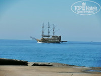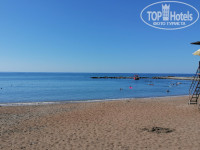 Отдельно хочется сказать про пляж. Попасть туда можно прямо из отеля по подземному переходу(не надо идти по солнцепёку). Это занимеет 2-3 минуты. На пляже всегда есть свободнве места. Хороший песчаный пляж с пологим заходом. Кое-где есть на входе камни и галька, но это не критично. Чуть правее заход пологий песчаный. Пляж с двух сторон огорожен камнистыми"пирсами", которые играют роль волнорезов. Пляж будто в бухте. Там нет высоких волн. Всё чисто и спокойно.