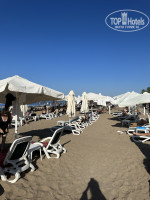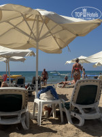Пляж. Море прекрасное, плавный заход, песок, изредка попадаются камни. За 10 дней только один раз были волны, и то не самые сильные. Шезлонги, зонты, вода, кофе бесплатно. Выдают так же полотенца, тоже бесплатно. Есть мужчина, который сидит на пляже, помогает, если нужно. Пляж не самый чистый, валяются окурки. Для нас было нормально в целом. Путь для пляжа составляет 15 минут примерно. Дорога нормальная, ничего необычного. Местность в целом немного горная, поэтому места приходится ходить с горы в гору.