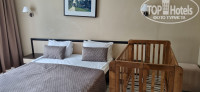 Столовая, в ней стоит запах столовки, вещи после посещения столовки воняют, выбор не богат, никаких изысков и излишков, ну голодным не будешь, но и удовольствия от еды не испытаешь, не было в июне свежих помидоров, огурцов, ну это вообще. Обычно блюда самые простые, завтрак - омлет, запеканка, обед ужин, 8 лотков, горячего и гарниры, салаты, фрукты, выпечка. Официантов много, молодцы, быстро убирают столы, в соседнем зале работает сотрудница с короткой стрижкой, мы хотели пройти через нее с коляской, в итоге она пустила нас, такое ощущение, что мы к ней домой приехали. Чтобы попасть в столовую надо преодолеть 2 огромные лестницы. И каждый должен пикнуть картой от номера, зафиксировать свой проход, помимо того, что у тебя есть браслет все включено. детские стульчики есть.