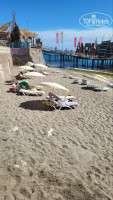 Пляж. Мало лежаков. Много поломанных. Как и поломанных зонты. Туристов много и поэтому занимают лежаки с раннего утра. Вход в море только с лестницы пирса. И она не подходит детям, и не очень мобильным людям. Вход с берега - плиты с цветущим флорой . Можно упасть. Были такие случаи. И не верьте, что рядом, в 100 метрах есть песок и можно туда пойти. Это пляж другого отеля! И там очень много людей!