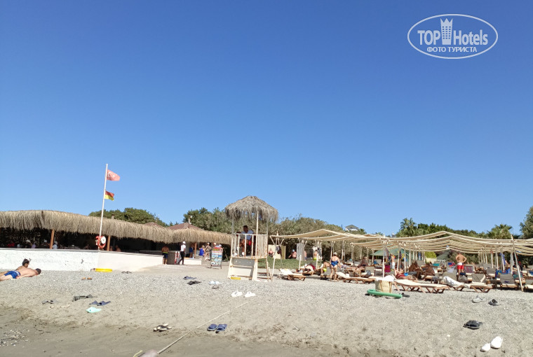 Пляж комфортный, широкий – плита вырублена, немного камешков. Но само море не понравилось абсолютно - песок какого-то грязного цвета серого, из-за этого цвет моря очень некрасивый возле берега. И само море постоянно грязное было, после обеда плавал пластик, пакетики, бумажки и т.п.