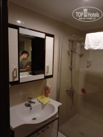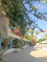 До отеля ехали 2ч.50 мин. Приехали около 10 вечера. Сразу пытались заселить на -1 этаж в эконом, но этот «фокус» не удался. Я сказала, что у нас стандарт и в эконом заселяться не будем. Сразу без всяких доплат нашелся для нас другой номер на 3 этаже в пятом корпусе (комната 517). По факту это как-бы 4 этаж. Вид на сад и соседний корпус данного отеля. Прекрасное тихое расположение. Почему не заселить сразу нормально – загадка… Сначала, конечно, шок от всего старого в этом отеле – от ресепшена, от «подъездов» корпусов, номеров, лифта и т.п. Но на третий день на это уже не обращаешь внимание. Всё работает, функционирует. У нас в комнате не было проблем с канализацией, но в соседних корпусах жаловались. Отличный матрац и подушки. Белье без пятен. Полотенца в номере староватые. Тапки очень хлипкие. Мебель старая, сантехника терпимая. Кондиционер работал исправно. Мыло и шампунь в дозаторе на стене, качество «для галочки», но у нас было все свое. Также в Мигросе купили их мыло жидкое, т.к. дозатор был прибит почти вплотную к раковине, не удобно пользоваться. Стаканов для зубных щеток нет. Питьевая вода 1,5л в свободном доступе везде: у лифта, в лифте, в подъезде…бери сколько хочешь. В барах только куллеры. Про качество воды в них не скажу, своим пить не разрешала из них.