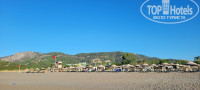 Пляж: серый - коричневый песок, вход в моря не совсем удобен (мелкие камушки). Вода в море прозрачная. Утром штиль, после обеда волна небольшая.