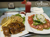 Тут я испытывала дискомфорт. В плане мяса, а именно почти все мясные блюда были из свинины. Я свинину не ем. Мне было сложно. Пару раз за отдых была курица. Даже гарниры были с добавлением ветчины и бекона. Каждый день была гуава, арбуз, питахайя, какой-то мелкий фрукт с размером вишни, не знаю))) Можно было делать гренки и бутерброды из хлеба, чем я и питалась. Были пару видов колбасы, сыр, масло (спред, маргарин - есть невозможно), огурцы, помидоры, листья салата, каждый день был какой-нибудь суп, венские вафли, кекс, соусы разные, пару джемов, из гарниров рис, спагетти, фунчоза, азиатские пельмешки (на пару), кофе, зеленый чай, соки. Горячие блюда были из свинины. Большой минус для меня было то, что яичница и омлет стояли готовыми на шведском столе. То есть их при вас сотрудник ресторана не жарил. Они почти всегда были остывшими - не вкусно. Также суп - готовые порции разложены по тарелкам и вы сами наливали из кастрюли бульон))))