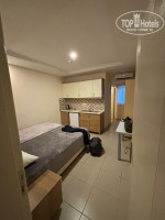 При входе в номер сразу в метре от двери стоит кровать на пол комнаты. Верхнее освещение практически отсутствует, находишься в полумраке. На весь номер у вас будет всего 2 мини окна - одно в коридор- общий вход, второе мини окошко рядом с туалетом ( размер 50 на 80 см и видом на помойку. То есть в номере состоящим из двух комнат нет толком окон Карл! Такое я встречаю впервые. Обстановка крайне странная, напоминает скорее афганский барак 80-х годов, чем отель в Турции. Вода горячая идет тоненькой струйкой. Мебель дряблая, все держится на соплях. На стенах плесень. Стены как будто из картона, слышны разговоры в соседнем номере.
