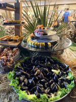 Основной ресторан : еды тоже достаточно , мы ели баранину , говядину , рыбу , вчера была какая то морская тематика и давали даже тунец , Раков , мидии , осьминогов , роллы ( но на наш вкус раков, роллы , мидии турки готовят не вкусно , если приедете , рекомендую не налегать , так как выкинете , их конек это мясо и рыба на гриле )