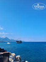 Приехала в отель очень рана, сидела на ресепшене ожидая заселение, подключилась к вайфаю отлично ловит, внутри было прохладно, на улице было так же где посидеть. Предложили пройти перекусить в столовую(спасибо). Очень доброжелательные и отзывчивые работники на ресепшене Эльяс( простите если не правильно написала имя🤍), выдают полотенца для море, и есть замечательная рыбка в аквариуме Пузырёк (Babl) 😊. Помогли донести чемодан на 3 этаж, номер выходил на бар и бассейн, по вечерам было очень шумно но мне это ни как не мешало, я приехала отдыхать на море и меня все устраивало.