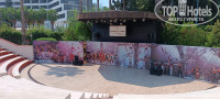 Были в отеле в конце августа 2024 г. Отель выбрали по рекомендации турагента за две недели до отпуска. Пожелания были: близко к аэропорту, ультра все включено,не дальше второй линии от пляжа, бюджетная пятерка с отзывами выше 4,5, аквапарк, зелёная большая территория, бассейны, пирс. Всё это есть в этом отеле. Что просили, то и получили)). Дорога от аэропорта заняла около часа, привезли вторыми. Приехали во второй половине дня поэтому заселили сразу. У нас был клубный номер в бунгало, в самом конце территории, откуда до пляжа идти минут 10. Далековато, конечно, в отличие от главного корпуса, но не критично, так как дорога тенистая, территории красивая, пройтись и погулять приятно. И, да, отвезли в номер на автокаре, чемоданы помогли поднять на второй этаж. Было два магнитных ключа и оказалось, что оба размагнитились, но эту проблему наш сопровождающий решил очень оперативно. Номер нормальный, две односпальные кровати и диван, шкаф с большим количеством плечиков, столик, большое зеркало. Балкон с двумя летними креслами, сушилкой для белья, вид на сад с фруктовыми деревьями и огромными соснами., которые очень хорошо защищали от жары. Кондиционер работал без нареканий. Мини бар с безалкогольными напитками пополнялся, но не поняла по какому принципу). Уборка была, полы мыли, полотенца меняли регулярно, но постельное бельё в замене не было замечено. Убиралась очень милая и скромная девушка, которая искренне радовалась небольшим чаевым. Мыло, шампунь, гель, шапочка для душа, швейный набор и ещё какая-то мелочевка присутствовала. Единственная претензия к душевой кабине из которой вода вылевалась на пол и долго не сохла. Днём было 38 градусов. Вода 30, бассейны тоже очень теплые. Есть мини бассейн для малышей, большой бассейн и бассейн с горками. Детишек развлекали, для них есть детский клуб, но нам это было не интересно. Понравились вечерние концерты и представления. Очень профессиональные фокусы. Попали на праздник турецкого дня победы. Артисты в национальных костюмах с барабанами и трубами. Небольшая пляжная линия, но есть большой разноуровневый пирс с которого ныряли и взрослые, и дети. С правой стороны пирса постоянно резвилась стая рыб разного размера, которых подкармливали смотрители пляжа. Благодаря этому рыбы держались в одном месте и не шныряли между купальщиками, если те только сами к ним не лезли)). Лежаков очень много, пляж убирается. Можно расположиться в тени деревьев на газоне.