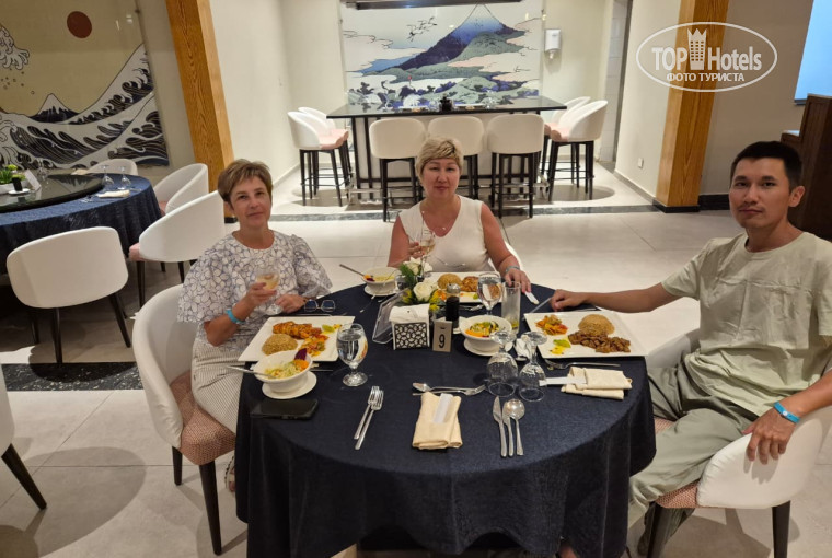 Превосходный отель, очень рекомендую. Внимание обслуживающего персонала (начиная с ресепшена, доставки до номера, уборка номера). Отличный номер 7057 с выходом на лужайку. Кондиционер работает, все гигиенический средства есть (кроме зубной пасты и щетки). Изоляция хорошая. 4 российских канала. Интернет работает в зоне отеля и моря (нет необходимости в приобретении сим карты). Питание в ресторане просто сказка: разнообразие, вкусно (мясо тает во рту, салаты, овощи, фрукты всё что только возможно). 1 раз ужинали в японском ресторане - пальчики оближешь. Группа анимации молодцы, работали и днём и каждый вечер. Хочется отметить бассейны - джакузи! Бассейн с искусственными волнами! Обслуживающий персонал запоминает туристов и предлагают напитки около бассейнов и в ресторане. Уборка в номере каждый день, за весь период отдыха ни разу не встретила персонал, который делал свою работу. Очень удобно, что рассчитываться за товар или услугу можно в долларах или рублях (нет необходимости менять на местную валюту. Понравилась экскурсия на яхте (дайвинг 10 мин, белый остров). Обзорная экскурссия не о чём, потраченное зря время. Вернулась ли бы в этот отель, однозначно ДА. Очень удобно, что он для категории +16. Хочется сказать огромное спасибо всем, кто сделал мой отдых на 5+!!!
