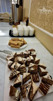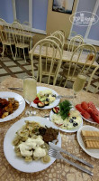 СТОЛОВАЯ: столовая состоит из 2 залов, первый зал - это обычная столовая с обшарпанными стульями, зоной раздачи и кондиционером, второй зал более комфортабельный, красивые шторы, картины, мебель, телевизор, кондиционер. Питание вполне приличное, несколько видов сыров, колбасы, ветчина, пара видов супов, гарниры на выбор, овощи, несколько видов мяса, иногда рыба (минтай и пангасиус). Пангасиус был несъедобный, с ярким запахом туалета (если заранее знаешь, что пангасиус кормят фикалиями, то есть будет невозможно), молочка, яйца и прочая домашняя кухня. Небольшой выбор десертов и фрукты. Из спиртного - полусладкие вина (красное и белое), полусладкое игристое и пиво, всё хорошего качества.