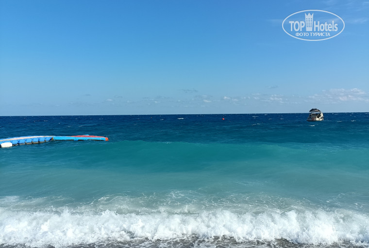 Он действительно впечатляет: широкий, чистый, с красивым входом в море и потрясающим видом на горы. Лежаки расставлены с разумным расстоянием — никакой тесноты, в отличие от некоторых «пятёрок», где пляжная полоса узкая, а шезлонги стоят впритык. До пляжа буквально 2 минуты ходьбы. Есть пляжный бар (пиво, соки, чай, вода), душевые, туалет и раздевалки. Правда, раздевалки иногда страдали от отдельных гостей — бывало, что туда заходили как в туалет, и запах становился невыносимым. Уборка, конечно, проводилась, но не всегда вовремя.