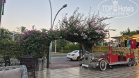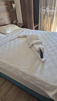 Заселили быстро. Т.к. мы приехали поздно, то на ужин не успели. Но в столовой нам оставили еду. Номер оказался маленький, но чистый, со всем необходимым. Кондиционер рабочий. Балкон выходил на соседние апартаменты. Касательно столовой: еды не много, но все свежее. На завтраки не хватало яичницы))))) вот с мясом в отеле действительно проблема. Его просто нет. Либо костлявая жареная рыба, либо куриные ребра на гриле. Раза 2 были куриные ноги. На этом все. Так что любителям мяса точно не сюда. Во всем остальном еда хорошая. Столовая чистая, тарелки убирают быстро. В баре пиво, бутылочное вино (белое, красное и розовое). Белое вино очень достойное. Подают в стеклянных бокалах. Ценник на коктейли- 7 евро. Пляж находится в 800 метрах. На нем загорают люди с трех отелей + арендуют из соседнего жилого комплекса. Но место мы всегда находили. Лежаки и матрасы уставшие. Кстати в отеле выдают полотенца под депозит в 10 долларов. При выезде депозит возвращают. Рядом с отелем находится турагенство Гинза. Ездили на экскурсии от них. Дешевле, чем у принимающего туроператора. При этом организовано все чётко. По оплате все озвучивают при покупке экскурсий и доп.денег не требуют. Так что рекомендуем. Каждый вечер ходили гулять в центр. Идти минут 15-20. Анимации в отеле нет совсем.