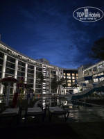 Территория отеля небольшая, но впринципе есть всё для комфортного отдыха. Я переживала, что будут холодные бассейны для ребёнка, но нет. На улице детский бассейн был очень тёплый. Взрослый большой чуть холоднее, но тоже тёплый. Крытый большой бассейн хорошо подогревают, а маленькие крытые почему то холодные, хотя подогрев работает. На улице возле бассейна бар Лёд работает с 10 до 24.00. Бесплатно шампанское, коктейли алк и безалкогольные, виски, джин. Хотелось, чтоб на баре работал бармен в перчатках! Возле бассейна не хватало урн для мусора,пустые стаканчики валялись,т.к.не куда их было выкидывать. Так же не хватало столиков маленьких возле бассейна, чтоб поставить стаканчик. Теперь про питание: питание в отеле в общем хорошее,но я видела и лучше. Выбор есть, голодными не останешься. Но если сравнивать с отелями сети Мираклеон, то там больше выбор. Хочу отметить, что коктейли делают вкусные, стараются, молодцы. Пиво хорошее, шампанское вкусное. Очень удобно, что перекусы работают до 12 ночи. Есть разные пиццы, бургеры, картошка фри, нагетсы, сосиски, что то мясное типа ребрышек свиных или мясо отварное или еще что то, печенье. Есть детские соки, йогурты, питание для малышей в баночках, мороженое, всё в доступности. Из негатива, неприятно смотреть, как женщина повар возле пиццы сначала столешницу протирает, потом пиццу этими руками без перчаток перекладывает с одной тарелки на другую. Оденьте перчатки своим сотрудникам на кухне!
